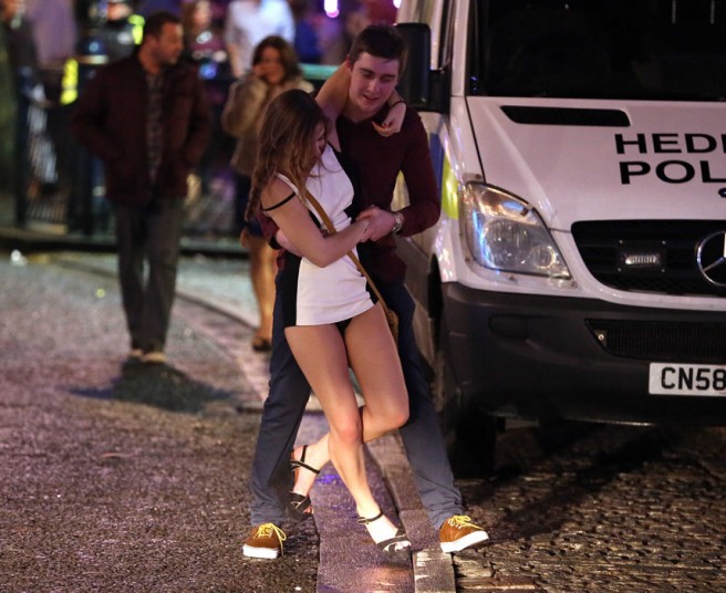 More very drunk girls photographed in the street after leaving parties, pubs, bars and nightclubs: vomiting, peeing, being carried, staggering, falling over, faceplanting, or passed out drunk: